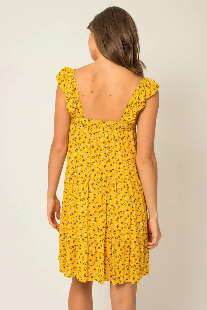 Stay stylish and comfortable with our Ruffle Shoulder Square Neck Ditsy Mini Dress. This dress not only features an on-trend ruffle shoulder design and a flattering square neck, but its ditsy print adds a playful touch to your look. Perfect for any occasion, this dress is a must-have in every wardrobe.