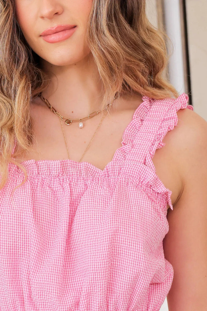 Sleeveless Tiered Ruffle Gingham Mini Dress