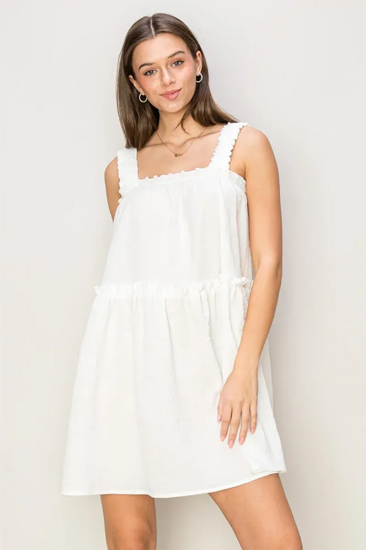 Sleeveless Tiered Ruffle Ruched Strap Mini Dress