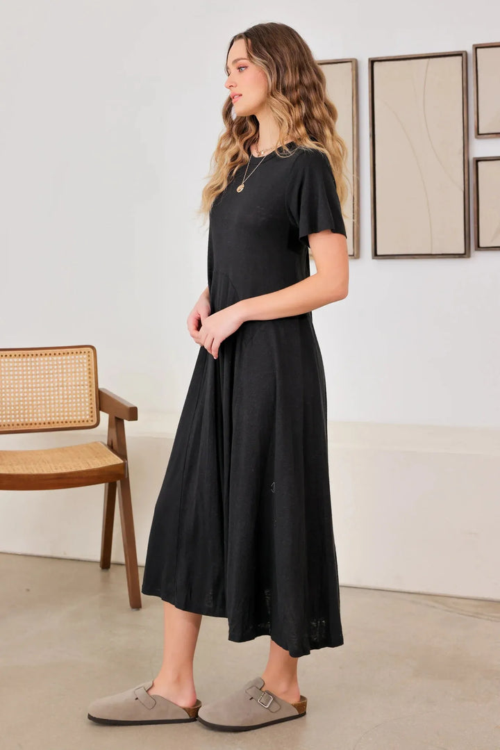 🖤 Features: Semi-transparent cotton blend fabric, open keyhole back detail, short sleeves, round neckline, midi length, relaxed fit, Smile brand detailing, versatile layering piece