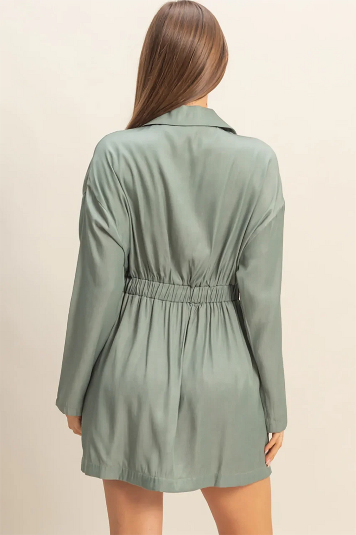 Long Sleeve Chambray Wrap Mini Shirt Dress with Gold Buttons
