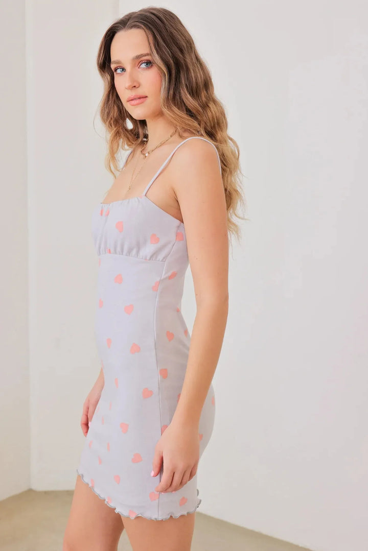 Unleash your daring side with our Heart Print Mini Dress! The adjustable straps add versatility and comfort, while the playful heart print exudes confidence and charm. Perfect for a night out or a day of adventure. Take a risk and make a statement with this mini dress!