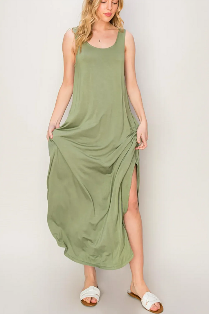 Experience effortless elegance with our Sleeveless Two Side Pocket Flowing Maxi Dress. Designed for comfort and style, this dress features a flowing silhouette that flatters all body types while providing the convenience of two side pockets for your essentials. Perfect for any occasion, whether it's a casual day out or a special event, this maxi dress combines versatility with a chic aesthetic. Elevate your wardrobe with this must-have piece that promises to keep you looking stylish and feeling comfortable all day long.