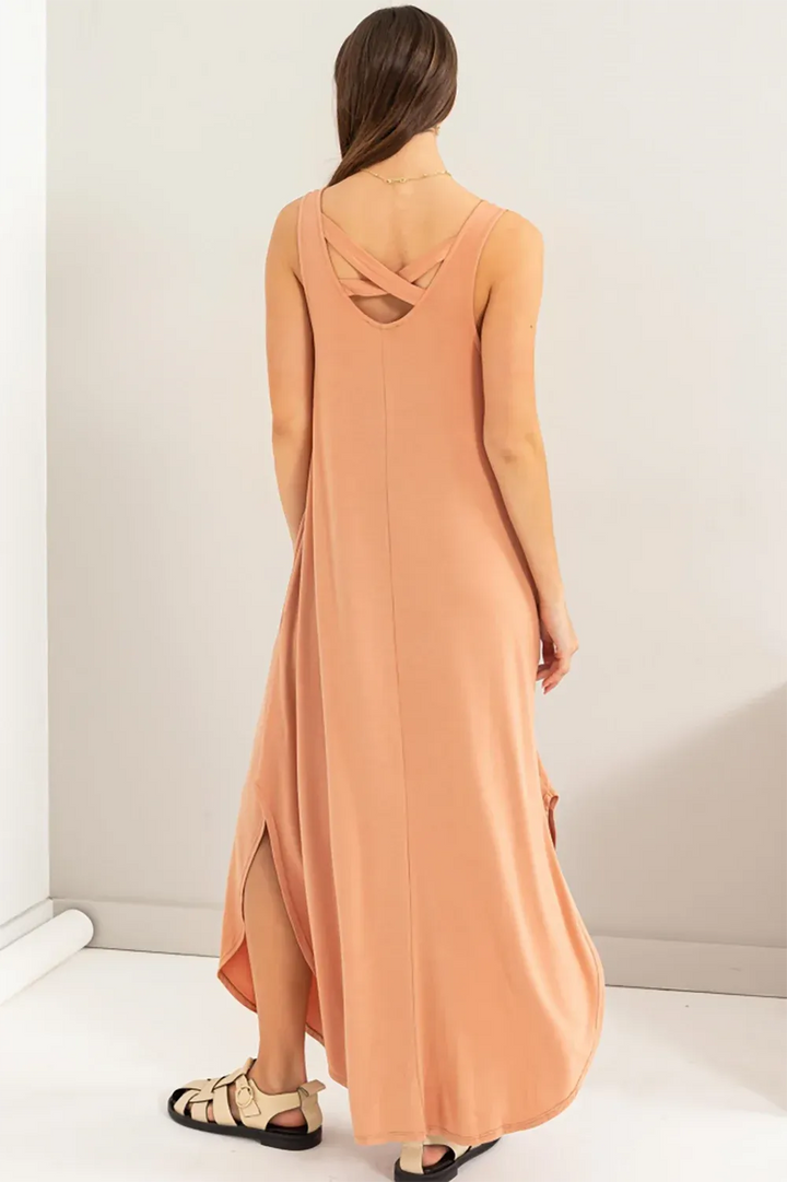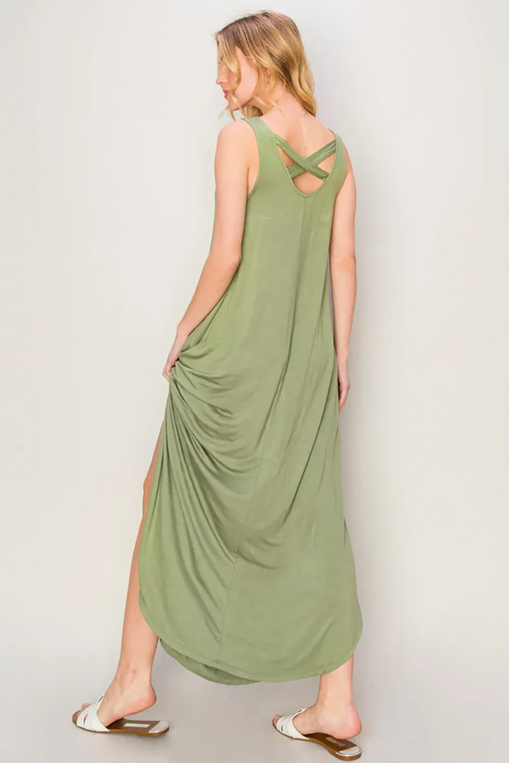 Sleeveless Flowing Maxi Dress with Side Pockets
