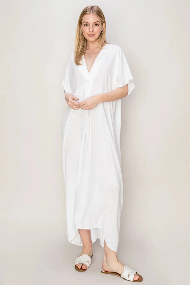 Breezy V-Neck Dolman Sleeve Beach Cover-Up Dress